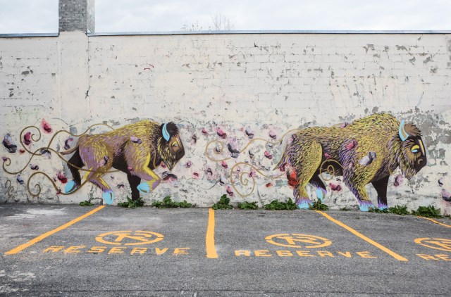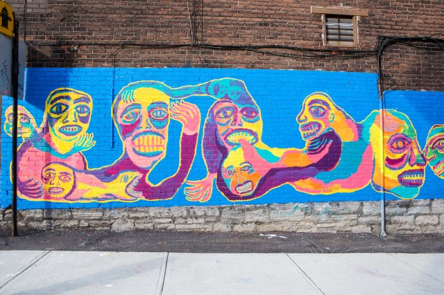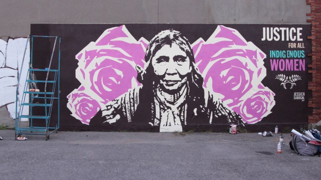 Unceded Voices: Anticolonial Street Artists Convergence is a muralists and street artists’ gathering that took place taking place in Tiohtià:ke/Montreal during the months of August 2014, 2015, and 2017 in three neighbourhoods: Mile Ex/Little Italy, Plateau Mont-Royal, and Little Burgundy. The goal of this convergence is three-fold: to develop a network of solidarity and support between BIPOC and women/non binary/2SLGBTQIA+ street artists, to promote anticolonial resistance through diverse street art interventions (murals, wheatpastes, stencils, textile art, installations, performances) and to foster relationships and dialogue between the artists and the broader community in each neighbourhood.