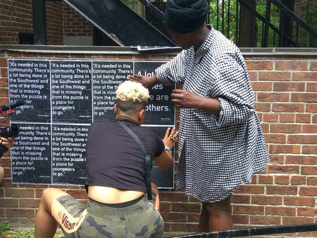 The multidisciplinary artist Kamissa Ma Koïta offered a new take on the history of Black communities in the Little Burgundy neighbourhood from a decolonial perspective. Black communities began to move to the neighbourhood from the end of the 19th century, in particular due to proximity to the Canadian Pacific construction shops, where a majority of its members worked. A municipal urban renewal program in the neighbourhood during the 1960s forced the dispersion and isolation of thousands of families. Today, Little Burgundy is still experiencing gentrification, a phenomenon that increases visible boundaries between Black communities and urban space.