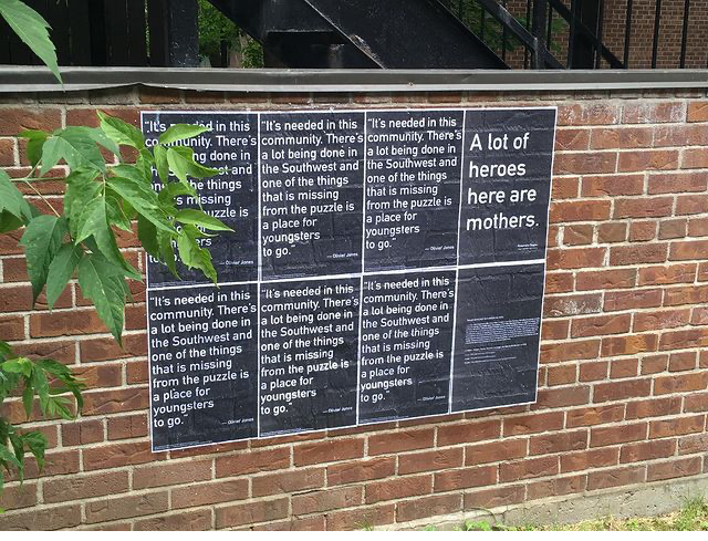 Project Burgundy provided a reflection of stories of Black bodies and identities that have been erased and made invisible. It invited members of these communities to walk with the artist in the public spaces of the neighbourhood. These collective tours was an opportunity to build new relationships while offering an affective and corporal experience of space that encourage the raising of questions about urban planning today. Based on archival research and documentation on the history of Little Burgundy’s Black communities, as well as discussions with participants, Kamissa created a psychogeographic map that has been installed at the Iberville Square, a park with a symbolic connotation for the residents of the neighbourhood. This map is an effort to recognize the geographic and social changes of the neighbourhood; the exercise also address toponymy by highlighting the representativeness and the cultural contribution of Black communities in the history of Little Burgundy. Project Burgundy united the voices of citizens whose words we hear all too rarely and recognize their strength and resistance.