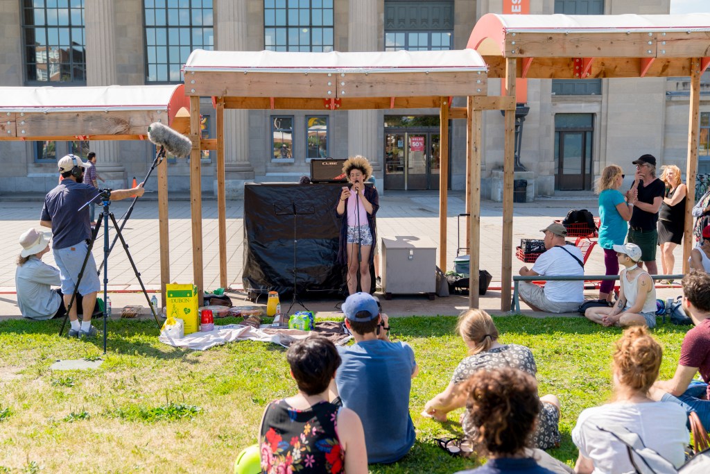 The four neighbourhoods that hosted these creations—Verdun, Petite-Bourgogne, Parc-Extension, and Côte-des-Neiges—each present a very different spatial, social and emotional geography. But one particular characteristic unifies all of them: visible and invisible boundaries. What in the late 1960s was considered as “modernization” of the city has now been transformed into a general gentrification movement, which particularly affects marginalized population groups in these neighbourhoods. Think, for example, of the Ville-Marie autoroute, Décarie Boulevard, and the highway 40 (Métropolitain), which, as imposing visible barriers, divide several neighbourhoods and create invisible borders between diasporas, and make access to essential resources—food, transportation, communities, etc.—more difficult. These are multiple realities and questions that the artists addressed throughout the summer, in the form of multidisciplinary installations and performances. The public has been invited to participate in these experiences and immerse itself in sensory and audio landscapes.