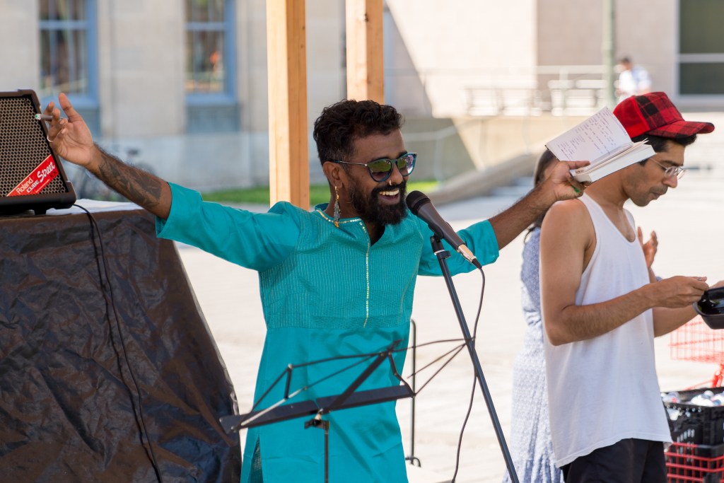 Parc-Extension & Us: Open Mic Against Gentrification, Kama La Mackerel, 2019. Photos credit: Jean-Michael Seminaro