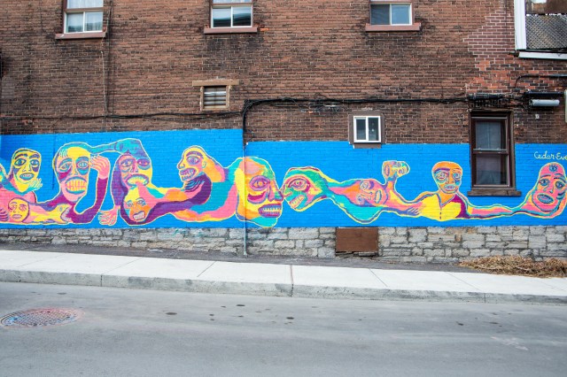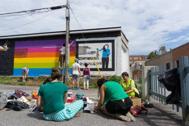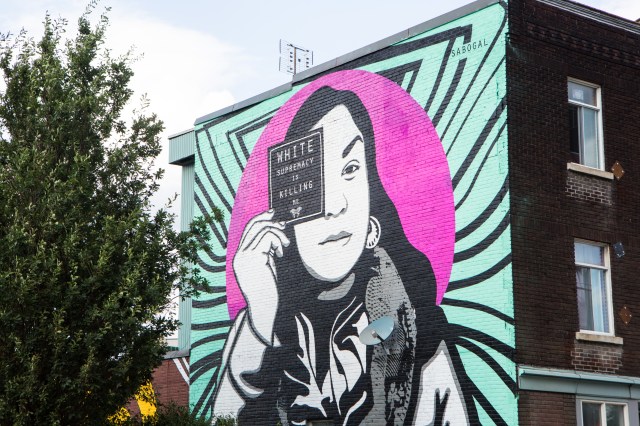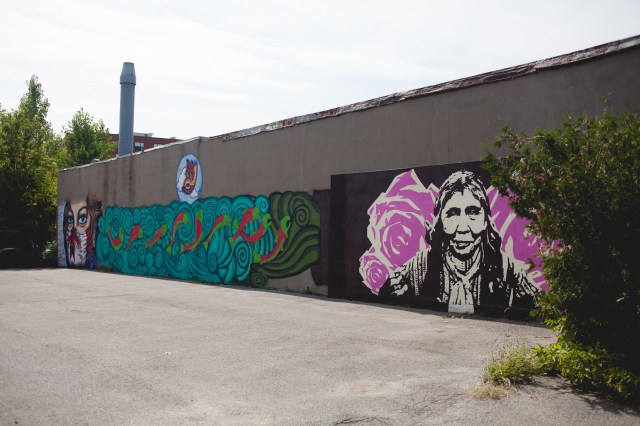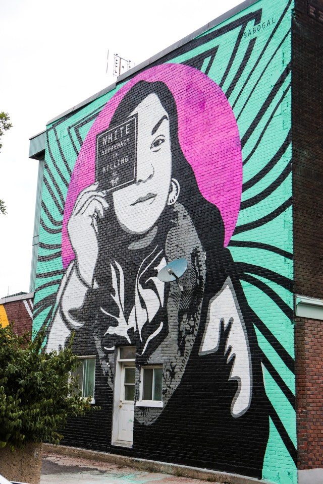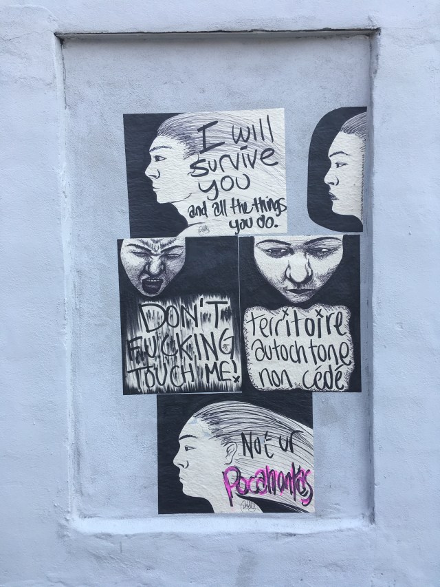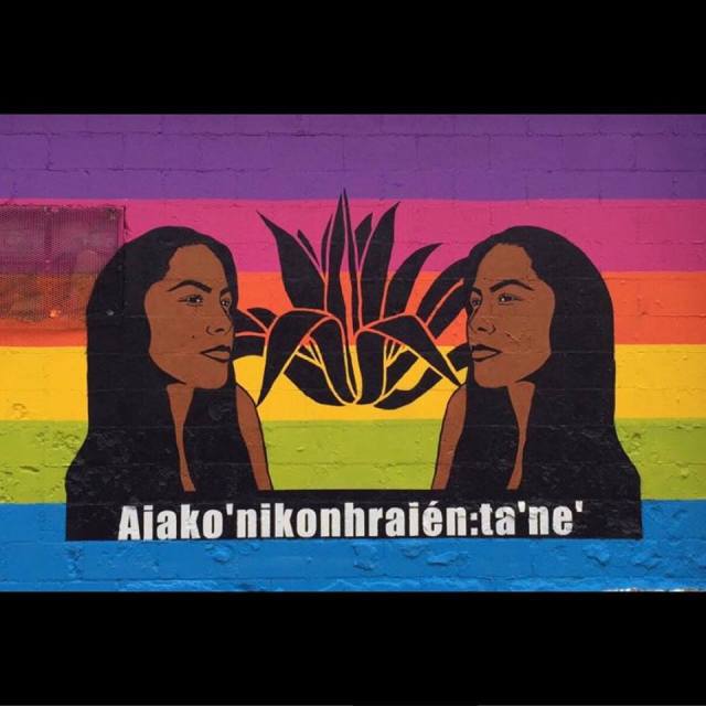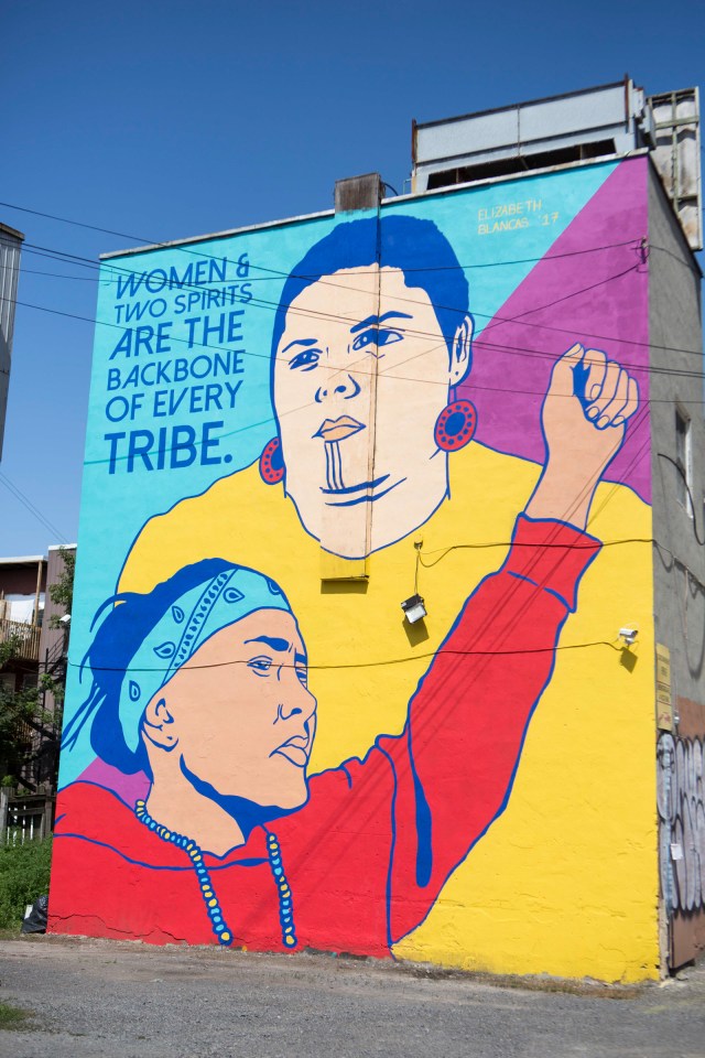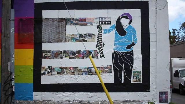 Unceded Voices: Anticolonial Street Artists Convergence is a muralists and street artists’ gathering that took place in Tiohtià:ke/Mooniyaang/Montreal during the months of August 2014, 2015, and 2017 in three neighbourhoods: Mile Ex/Little Italy, Plateau Mont-Royal, and Little Burgundy. The goal of this convergence is three-fold: to develop a network of solidarity and support between Indigenous, Black and racialized folks who identify as women/non binary/2SLGBTQIA+ street artists, to promote anticolonial resistance through diverse street art interventions (murals, wheatpastes, stencils, textile art, installations, performances.etc.) and to foster relationships and dialogues between the artists and the local community in each neighbourhood.